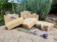Ingredients: Goat milk (from our goats), Palm oil, Coconut oil, Olive oil, Avocado oil, Shea butter, Sodium Hydroxide (lye), Lavender essential oil, Lavender bud topping.