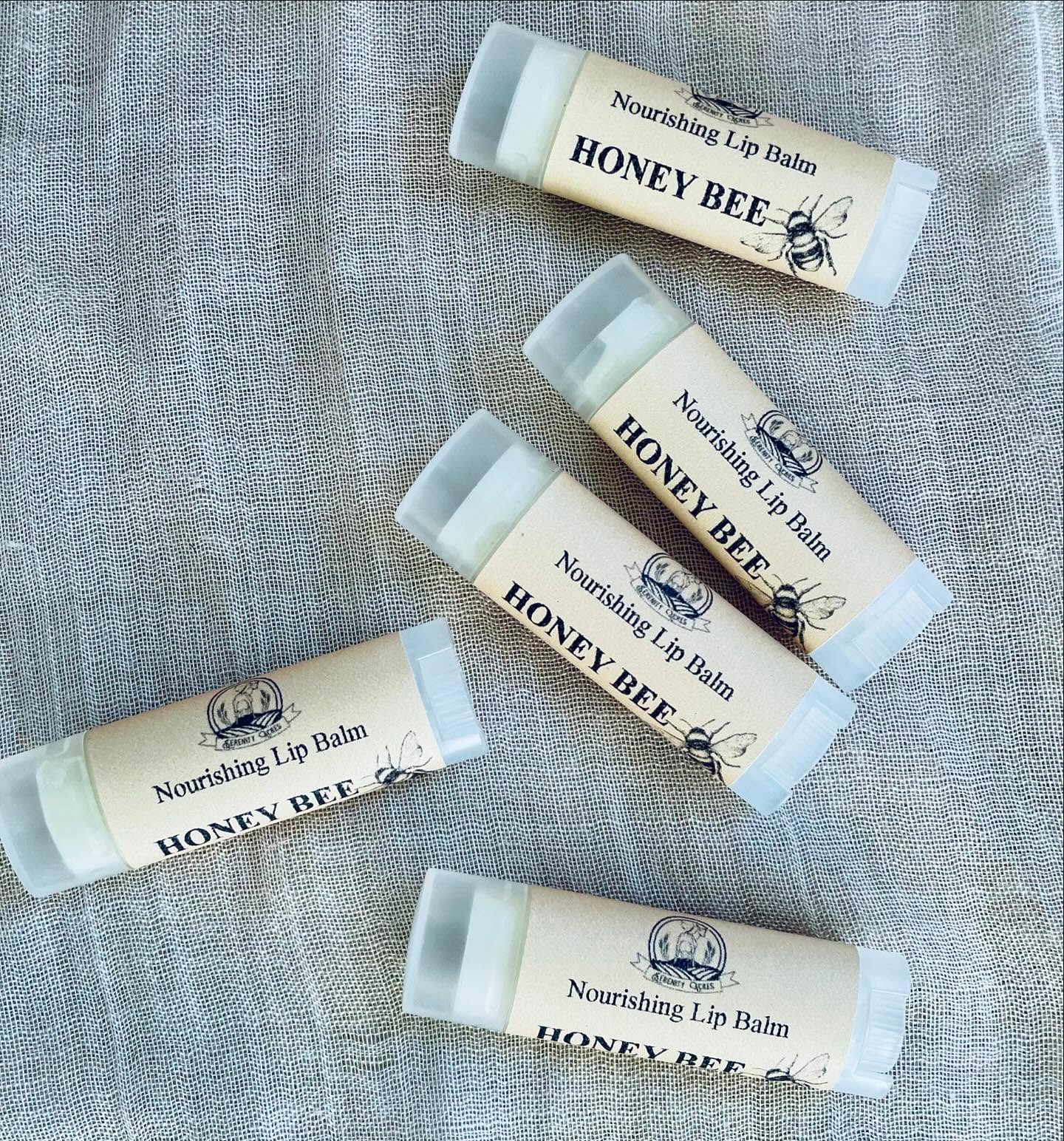 Nothing but lip loving ingredients -- beeswax, cocoa butter, coconut oil, sweet almond oil, vitamin E and honey.