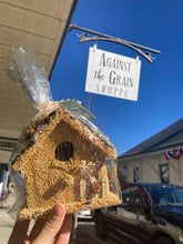 Hand decorated with natural raffia, floral, cranberries, raisins, and millet. Under the seed and decoration is a small ornamental wooden bird house. All natural ingredients, completely safe for birds of all kinds. Absolutely the perfect gift for teachers, neighbors, friends, and family!