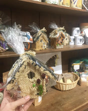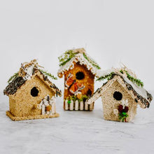 These adorable cottages are a sweet seed treat for sparrows, doves, chickadees, cardinals, finches and jays. Hang from a limb or post mount.