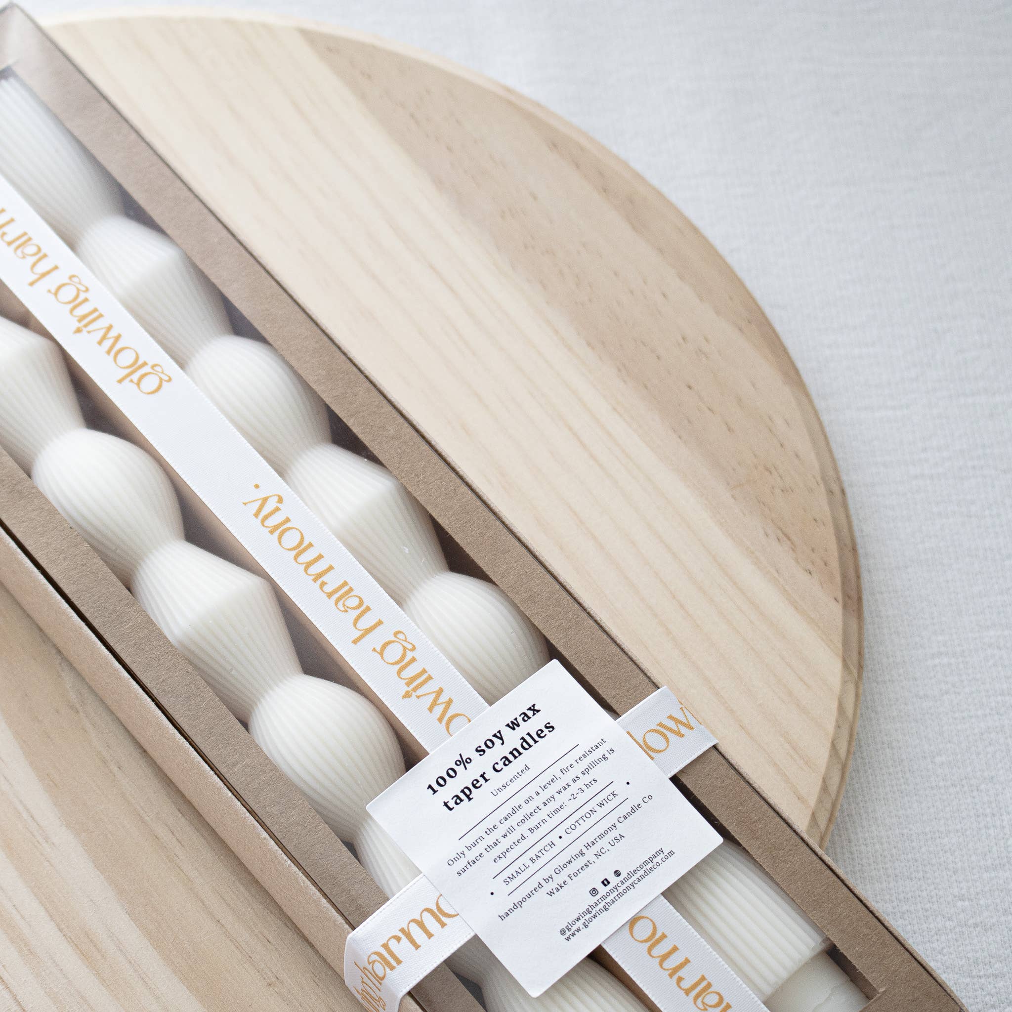Designed with a sleek, ribbed texture and elegant hourglass shape, these candles effortlessly complement a variety of interior styles. Hand-poured in small batches using natural soy wax and cotton wicks, each candle reflects our dedication to high standards and mindful production. As a woman-owned business proudly based in Wake Forest, NC, we craft with intention—focusing on clean ingredients and putting a whole lot of heart into every creation.