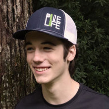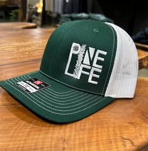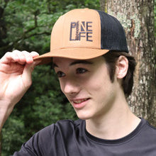 The best-selling PINE LIFE signature trucker cap features cotton-poly/nylon mesh fabric, a pre-curved visor, a cotton sweatband, and an adjustable snapback.