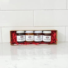 Set Includes: 1oz Balsamic Onion, 1oz Orange Chili, 1oz Peach Jalapeno, 1oz Peach Sriracha